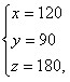 解:設(shè)一只甲筐裝x個球,一只乙筐裝y個球,一只丙筐裝z個球,