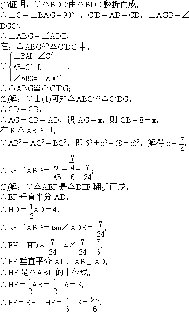 (1)求證:△ABG≌△C′DG;