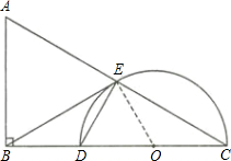 分析:(1)由于DE垂直平分AC,可得兩個(gè)條件:①DE⊥AC,②E是AC的中點(diǎn);由①得:∠DEC是直角,則DC是⊙O的直徑,若連接OE,則OE⊥BE,且∠BOE=2∠C;欲求∠C的度數(shù),只需求出∠EBO、∠C的比例關(guān)系即可;由②知:在Rt△ABC中,E是斜邊AC的中點(diǎn),則BE=EC,即∠EBO=∠C,因此在Rt△EBO中,∠EBO和∠EOB互余,即3∠C=90°,由此得解.