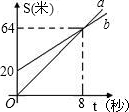 小馮、小范進行賽跑,如果兩人同時跑,小馮肯定贏,現(xiàn)在小馮讓小范先跑若干米,圖中的射線a、b分別表示兩人跑的路程與小馮追趕時間的關系,根據(jù)圖象判斷:小馮的速度比小范的速度每秒快________米.