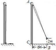 如圖,小明將升旗的繩子拉到旗桿底端,并在繩子上打了一個(gè)結(jié),然后將繩子拉到離旗桿底端6m處,發(fā)現(xiàn)此時(shí)繩子底端距離打結(jié)處約2m,請(qǐng)?jiān)O(shè)法算出旗桿的高度.