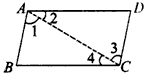 如圖,已知AB∥CD,AD∥BC,說明∠A=∠C。