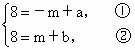 若直線y=-x+a和y=x+b的交點(diǎn)坐標(biāo)為(m,8),則a+b=________.