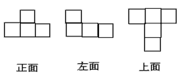 下列幾何體是由六個(gè)小正方體搭成的,分別畫出從正面、左面、上面看得到的平面圖形。