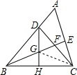 連接CG.因?yàn)椤鰾CD是等腰直角三角形,即BD=CD.又因?yàn)镈H⊥BC,那么DH垂直平分BC.即BG=CG.