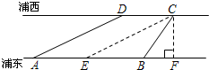 如圖,世博園段的浦江兩岸互相平行,C、D是浦西江邊間隔200m的兩個場館.海寶在浦東江邊的寶鋼大舞臺