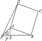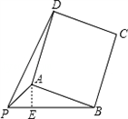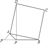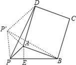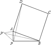 | 解:(1)①如圖,作AE⊥PB于點E, ∵△APE中,∠APE=45°,PA= ∴AE=PE= ∵PB=4, ∴BE=PB﹣PE=3, 在Rt△ABE中,∠AEB=90°, ∴AB= ②:如圖,因為四邊形ABCD為正方形, 可將△PAD繞點A順時針旋轉(zhuǎn)90°得到△P'AB, 可得△PAD≌△P'AB,PD=P'B,PA=P'A. ∵∠PAP'=90°,∠APP'=45°,∠P'PB=90° ∴PP′= ∴PD=P′B= (2)如圖所示,將△PAD繞點A順時針旋轉(zhuǎn)90° 得到△P'AB,PD的最大值即為P'B的最大值, ∵△P'PB中,P'B<PP'+PB, PP′= 且P、D兩點落在直線AB的兩側(cè), ∴當(dāng)P'、P、B三點共線時,P'B取得最大值(如圖) 此時P'B=PP'+PB=6,即P'B的最大值為6. 此時∠APB=180°﹣∠APP'=135度. |
