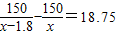 【答案】分析:求的是單價(jià),總價(jià)明顯,一定是根據(jù)數(shù)量來(lái)列等量關(guān)系,等量關(guān)系為:原來(lái)150元能添的數(shù)量-現(xiàn)在150元能添的數(shù)量=18.75.