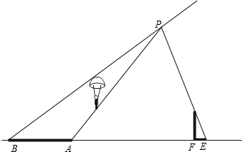 如圖所示,快下降到地面的某傘兵在燈光下的影子為AB.試確定燈源P的位置,并畫出豎立在地面上木樁的影子EF.(保留作圖痕跡,不要求寫作法)