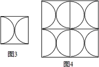 實踐與操作:如圖1是以正方形兩頂點為圓心,邊長為半徑,畫兩段相等的圓弧而成的軸對稱圖形,圖2是以圖1為基本圖案經(jīng)過圖形變換拼成的一個中心對稱圖形.![]()