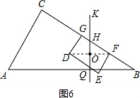 如圖6:當QK經(jīng)過矩形DEFG的對稱中心O時,就可以把矩形DEFG分成面積相等的兩部分;