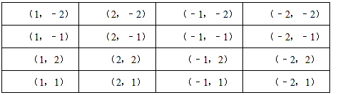 有四張卡片(背面完全相同),分別寫有數(shù)字1、2、﹣1、﹣2,把它們背面朝上洗勻后,甲同學抽取一張記下這個數(shù)字后放回洗勻,乙同學再從中抽出一張,記下這個數(shù)字,用字母b、c分別表示甲、乙兩同學抽出的數(shù)字.