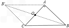 | 解:延長(zhǎng)BO到B′,使OB′=OB,連接AB′,CB′, ∵∠A=90°,AC=AB=2, ∴OA= 在Rt△BOA中,OB= ∵點(diǎn)B繞O點(diǎn)旋轉(zhuǎn)180°到B′, 故BB′=2BO=2 |