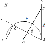 | 解:(1)∵AB為直徑, ∴∠ACB=90°, 即:AC⊥BC, 又∵OE⊥BC, ∴OE∥AC, ∴∠BAC=∠FOB, 又∵BN是半圓的切線, ∴∠BCA=∠FBO=90°, ∴△ACB∽△OBF; |