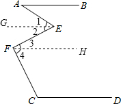分析:過(guò)點(diǎn)E作EG∥AB,過(guò)點(diǎn)F作FH∥AB,根據(jù)平行公理可得AB∥EG∥FH∥CD,再根據(jù)平行線的性質(zhì)解答即可.
