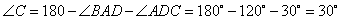 如圖,⊙O的直徑AB=6,D為⊙O上一點,∠BAD=30°,過D點的切線交AB的延長線于點C。求: