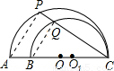 如圖,AC、BC是兩個半圓的直徑,∠ACP=30°,若AB=10cm,則PQ的值為