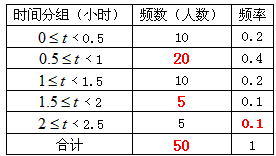 | 時間分組(小時) | 頻數(shù)(人數(shù)) | 頻率 |