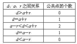 | d,a,r之間的關系 | 公共點的個數(shù) |