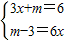 由3x+m=6可得6x=12-2m,