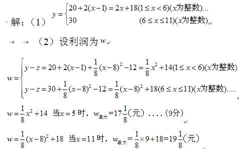 , 1≤ x ≤11,且x為整數(shù),那么該品牌童裝在第幾周售出后,每件獲得利潤最大?并求最大利潤為多少?