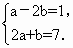 a、b對應(yīng)的密文為a-2b、2a+b.例如,明文1、2對應(yīng)的密文是-3、4.當接收方收到密文是1、7時,解密得到的明文是-