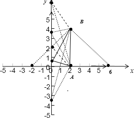解答:解:∵點(diǎn)A、B的坐標(biāo)分別為(2,0)、(2,4),