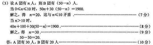 (3)某旅行杜導(dǎo)游王娜于5月1日帶A團(tuán).5月20日(非節(jié)假日)帶B團(tuán)都到該景區(qū)旅游.共付門票款1900元.A,B兩個(gè)團(tuán)隊(duì)合計(jì)50人,求A,B兩個(gè)團(tuán)隊(duì)各有多少人?