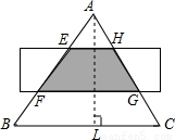 【答案】分析:由題意可以推出EH∥FG∥BC,即可知△AEH∽△AFG∽△ABC,結(jié)合已知條件便可推出S△AEH:S△AFG:S△ABC=1:4:8,然后求出△ABC的面積,即可推出陰影部分的面積.