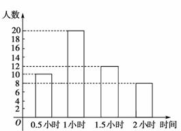 為增強學(xué)生的身體素質(zhì),教育行政部門規(guī)定學(xué)生每天參加戶外活動的平均時間不少于1小時。為了解學(xué)生參加戶外活動的情況,對部分學(xué)生參加戶外活動的時間進行抽樣調(diào)查,并將調(diào)查結(jié)果繪制作成如下兩幅不完整的統(tǒng)計圖,請你根據(jù)圖中提供的信息解答下列問題: