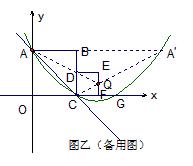 | (3)①如圖乙,延長(zhǎng)AB交拋物線于A′,連CA′交對(duì)稱軸x=3于Q,連AQ則有AQ=A′Q, △ACQ周長(zhǎng)的最小值為(AC+A′C)的長(zhǎng), ∵A與A′關(guān)于直線x=3對(duì)稱∴A(0,2),A′(6,2), ∴ 而AC= ∴△ACQ周長(zhǎng)的最小值為 ②當(dāng)Q點(diǎn)在F點(diǎn)上方時(shí),S=t+1, 當(dāng)Q點(diǎn)在線段FN上時(shí),S=1-t, 當(dāng)Q點(diǎn)在N點(diǎn)下方時(shí),S=t-1。 |