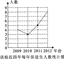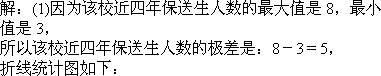 (1)該校近四年保送生人數的極差是 .請將折線統(tǒng)計圖補充完整;