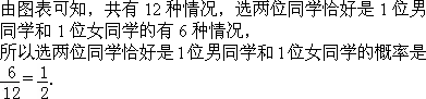 (2)該校2009年指標到校保送生中只有1位女同學,學校打算從中隨機選出2位同學了解他們進人高中階段的學習情況.請用列表法或畫樹狀圖的方法,求出所選兩位同學恰好是1位男同學和1位女同學的概率.