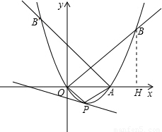 (2)在拋物線上存在一點(diǎn)B,使四邊形OPAB為梯形.當(dāng)AP∥OB時(shí),過點(diǎn)B作BH⊥x軸于H,則OH=BH,設(shè)點(diǎn)B(x,x),求出x=6,所以B(6,6);