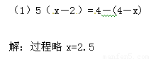 【小題1】(1)5(x-2)=4-(4-x) 【小題2】(2)![]()