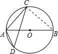 分析:欲求∠ADC,已知圓周角∠BAC的度數(shù),可連接BC,根據(jù)圓周角定理,可得∠D=∠B,由此將所求和已知的角構(gòu)建到一個直角三角形中,根據(jù)直角三角形的性質(zhì),可求出∠ADC的度數(shù).