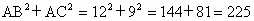 在△ABC中,AB=12cm,AC=9cm,BC=15cm,則![]()