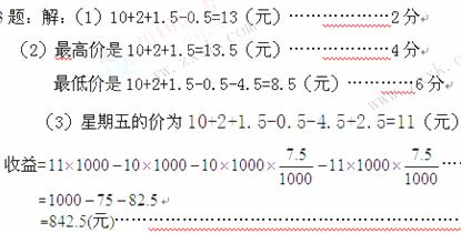 (1)星期三收盤(pán)時(shí),每股是多少元?