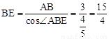 (2)連接BD,在Rt△ABD中,解直角三角形求出AB的長(zhǎng)度;然后在Rt△ABE中,解直角三角形求出AE的長(zhǎng)度;最后利用DE=AD﹣AE求得結(jié)果。
