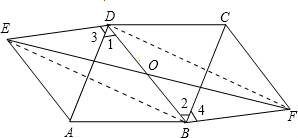 ∠1+∠3=∠2+∠4,即∠BDE=∠DBF,