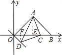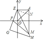 | 解:(1)作AE⊥OB于E,如圖1, ∵A(4,4), ∴OE=4, ∵△AOB為等腰直角三角形,且AE⊥OB, ∴OE=EB=4, ∴OB=8, ∴B(8,0); (2)作AE⊥OB于E,DF⊥OB于F,如圖2, ∵△ACD為等腰直角三角形, ∴AC=DC,∠ACD=90°, 即∠ACF+∠DCF=90°, ∵∠FDC+∠DCF=90°, ∴∠ACF=∠FDC, 又∵∠DFC=∠AEC=90°, ∴△DFC≌△CEA, ∴EC=DF,F(xiàn)C=AE, ∵A(4,4), ∴AE=OE=4, ∴FC=OE,即OF+EF=CE+EF, ∴OF=CE, ∴OF=DF, ∴∠DOF=45°, ∵△AOB為等腰直角三角形, ∴∠AOB=45°, ∴∠AOD=∠AOB+∠DOF=90°; (3) 在AM上截取AN=OF,連EN,如圖3, ∵A(4,4), ∴AE=OE=4, 又∵∠EAN=∠EOF=90°,AN=OF, ∴△EAN≌△EOF(SAS), ∴∠OEF=∠AEN,EF=EN, 又∵△EGH為等腰直角三角形, ∴∠GEH=45°,即∠OEF+∠OEM=45°, ∴∠AEN+∠OEM=45°, 又∵∠AEO=90°, ∴∠NEM=45°=∠FEM, 又∵EM=EM, ∴△NEM≌△FEM(SAS), ∴MN=MF, ∴AM﹣MF=AM﹣MN=AN, ∴AM﹣MF=OF,即 |