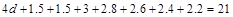 有一種用來畫圓的工具板(如圖所示),工具板長21cm,上面依次排列著大小不等的五個圓(孔),其中最大圓的直徑為3cm,其余圓的直徑從左到右依次遞減0.2cm. 最大圓的左側(cè)距工具板左側(cè)邊緣1.5cm,最小圓的右側(cè)距工具板右側(cè)邊緣1.5cm,相鄰兩圓的間距d均相等.