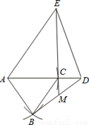 (3)在(2)的條件下,把△ABC繞點(diǎn)A逆時(shí)針旋轉(zhuǎn)180°,在備用圖中作出旋轉(zhuǎn)后的圖形(要求:尺規(guī)作圖,不寫作法,保留作圖痕跡),連接EC并延長(zhǎng)交BD于點(diǎn)M.則∠BMC= _________ (用α表示).![]()