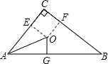 分析:利用勾股定理逆定理判定△ABC是以∠C為直角的三角形,再根據(jù)角平分線上的點到角的兩邊的距離相等可得點O到三邊的距離相等,然后利用△ABC的面積列式求出OG的長度,過點O作OE⊥AC,OF⊥BC,判定四邊形CEOF是正方形,求出CE,再求出AE,然后根據(jù)對稱性可得AG=AE,從而得解.
