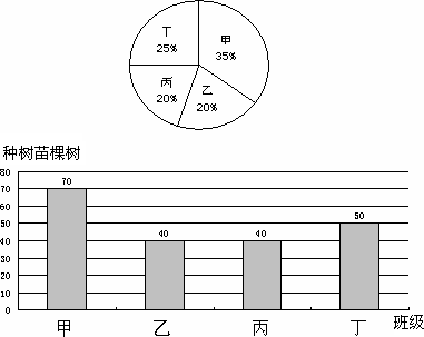 紅星中學(xué)開展了“綠化家鄉(xiāng),植樹造林”活動(dòng),并對該校的甲、乙、丙、丁四個(gè)班級種樹情況進(jìn)行了考察,并將收集的數(shù)據(jù)繪制了圖①和圖②兩幅尚不完整的統(tǒng)計(jì)圖.