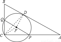 中,AB=10,AC=8,BC=6,經(jīng)過點(diǎn)C且與邊AB相切的動圓與CA,CB分別相交于點(diǎn)P,Q,則線段PQ長度的最小值是 ![]()