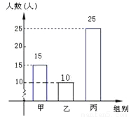 (2)根據(jù)丙組的25人占總體的50%,即可計(jì)算總體人數(shù),然后計(jì)算乙組的人數(shù),補(bǔ)全統(tǒng)計(jì)圖;