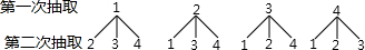 | 第一次抽取 第二次抽取 | 1 | 2 | 3 | 4 |