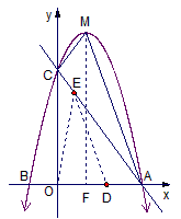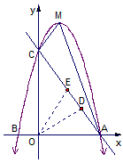 | 解:令x=0,則y=4,令y=0,則x=3, ∴A(3,0),C(0,4), ∵二次函數(shù)的圖象過點C(0,4), ∴可設(shè)二次函數(shù)的關(guān)系式為y=ax2+bx+4, 又∵該函數(shù)圖象過點A(3,0),B(-1,0), ∴ ∴所求二次函數(shù)的關(guān)系式為 (2)∵ ∴頂點M的坐標為(1, 過點M作MF⊥x軸于F, ∴S四邊形AOCM=S△AFM+S梯形FOCM = ∴四邊形AOCM的面積為10; (3)①不存在DE∥OC, ∵若DE∥OC,則點D,E應(yīng)分別在線段OA,CA上, 此時1<t<2, 在Rt△AOC中,AC=5, 設(shè)點E的坐標為(x1,y1), ∴ ∴ ∵DE∥OC, ∴ ∴t= ∵t= ∴不存在DE∥OC; ②根據(jù)題意得D,E兩點相遇的時間為 現(xiàn)分情況討論如下: (ⅰ)當0<t≤1時, (ⅱ)當1<t≤2時,設(shè)點E的坐標為(x2,y2), ∴ ∴ ∴ (ⅲ)當2<t< 類似ⅱ可得 ∴ ∴ ∴S=S△AOE-S△AOD = ③ |