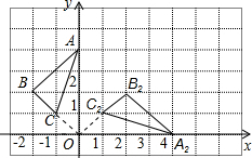 (2)根據(jù)題意所述的旋轉(zhuǎn)角度、旋轉(zhuǎn)方向及旋轉(zhuǎn)中心可找到各點的對應(yīng)點,順次連接即可得出△A1B2C2